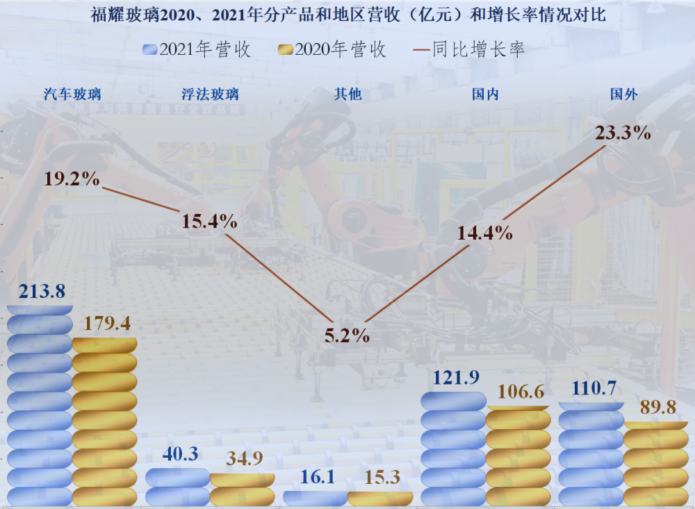 而福耀玻璃主要增長的還是汽車玻璃,而且是國外銷售的汽車玻璃。雖然也在大宗商品漲價中水漲船高,但是受益程度有限。
