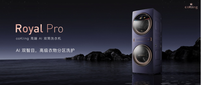 Royal Pro coKiing高端AI雙筒洗衣機更是集合了雲米兩大AI智能洗護黑科技——AI 智⽬洗和AI雙筒智能投放。