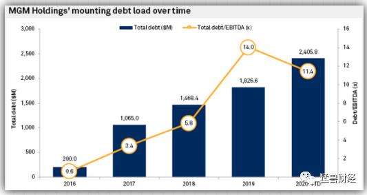 猛獸財經認為,米高梅在被亞馬遜收購前債務不斷增加的原因主要有兩個:首先,它在2017年收購了流媒體平臺EPIX(從其2017年的債務激增就可以看出),其次是它在內容方面的投資,因為它試圖增加其在內容方面的節目和劇集數量,在2017年至2019年間,米高梅已經將它的節目數量從21集增加到了41集了。