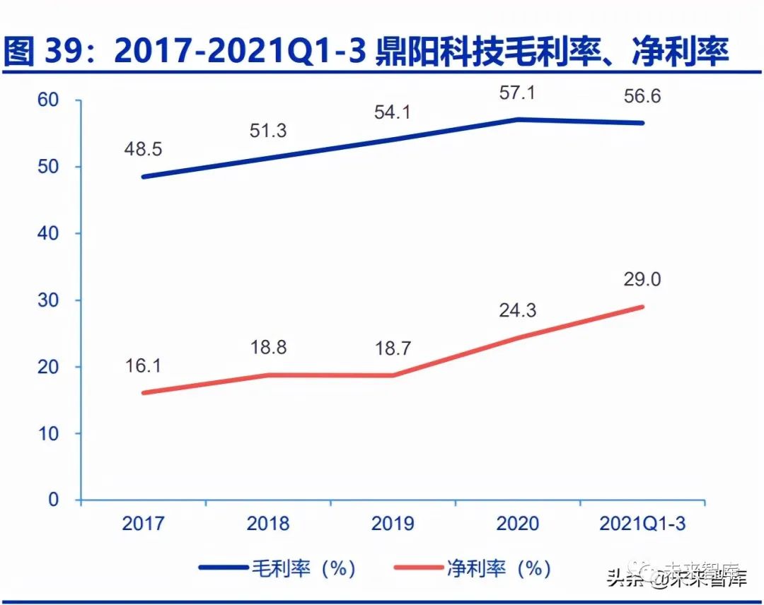 2021 年前三季度營收和利潤增速均超 50%,毛利率和淨利率有所下降但仍居高位。2021 年前三季度公司總營收 9936 萬元,同比增長 53.68%;歸母淨利潤 3022 萬元,同 比增長 55.95%。公司 2021 年前三季度收入大增主要得益於公司今年推出了多款高端產品 並加大個性化定製產品的銷售力度。公司採用預付款享折扣的商業模式,讓利給下游客户, 導致近幾年毛利率和淨利率逐漸下滑,2021 年前三季度,一定程度上受關鍵原材料芯片漲 價的影響,毛利率及淨利率小幅下滑,但仍分別保持 56.37%、30.33%的高位水平。