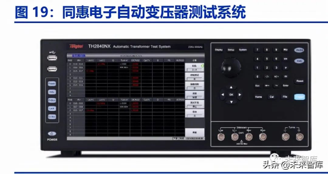 深耕電子元器件測量儀器 27 年,多款產品打破國外壟斷。同惠電子 1994 年 12 月成 立於江蘇常州,是國內一家集研、產、銷於一體的電子測量儀器高新技術企業,公司聚焦 電子元器件測量儀器領域,達到國內領先水平,TH2851-130 精密阻抗分析儀、TH2840X 自動變壓器測試系統以及 TH2690 飛安表/靜電計/高阻計打破國外廠商的壟斷地位。