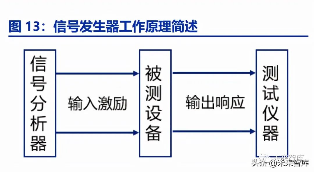 信號發生器:是通過輸出特定的仿真和激勵測試信號,來測試如射頻功率放大器等相 關元器件性能的電測儀器。信號發生器主要分為任意波形發生器和射頻微波信號發生器, 其主要功能包括:(1)某些電氣設備的激勵信號源;(2)設備測量中產生模擬實際環境 特性信號,如干擾信號仿真;(3)產生一些標準信號以與一般信號源進行校準比對。其廣 泛應用於 5G 通訊、半導體、新能源、汽車電子、醫療電子、消費電子、航空航天、教育科 研等行業。