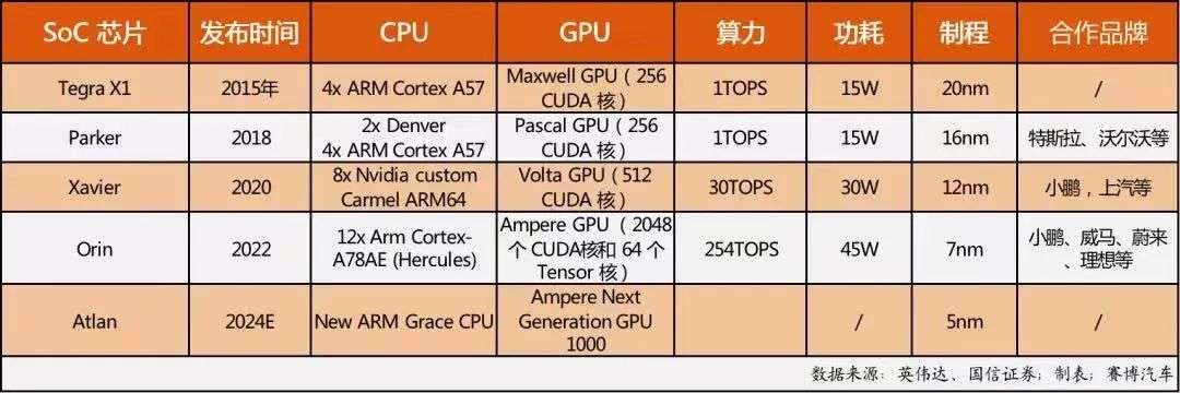 2020年,Xavier芯片算力為30 TOPS,2022年量產上車的Orin算力一躍至254 TOPS。
