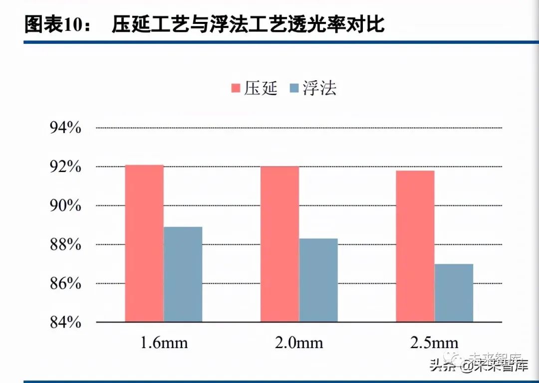 (1)壓延玻璃相比於浮法玻璃具備性能優勢及產能政策優勢。2018 年工信部發布《水泥玻璃行業產能置 換實施辦法》,對平板玻璃新建產能實施嚴格限制,必須實行等量或減量替換。2020 年,隨着光伏新增裝機的 快速增加,光伏壓延玻璃產能嚴重短缺,為應對供給緊張局面,工信部對產能置換辦法進行調整,對光伏玻璃、 汽車玻璃放開產能限制,光伏壓延玻璃供給的釋放逐漸推動其價格迴歸合理水平。在光伏壓延玻璃供給緊張時 期,價格持續上漲,一些浮法玻璃企業轉產光伏玻璃,採用超白浮法玻璃替代玻璃背板以緩解供給緊張問題, 但隨着產能釋放,光伏壓延玻璃仍是組件廠商的首選,大部分浮法玻璃企業迴歸傳統行業。差異性政策影響下, 大批量光伏壓延玻璃將投產,光伏玻璃供給持續短缺的局面將不太可能出現,浮法玻璃滲透驅動力不足。