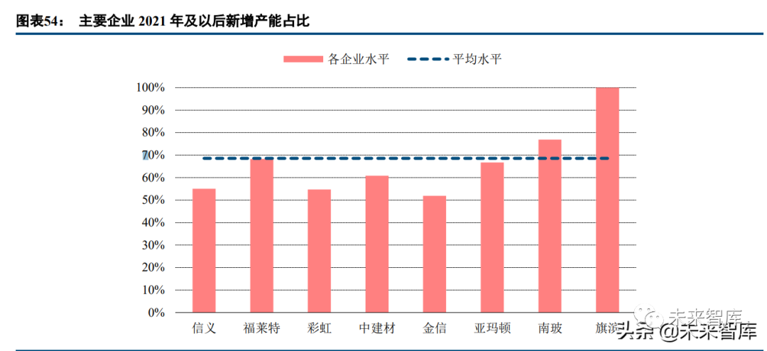 第一,兩家企業新產能佔比高,窯爐規模大,具備后發優勢。兩家企業新建產線均為 1000t/d 及以上產線, 產線點火投產后,兩家企業的平均窯爐規模均超過行業平均水平。一方面大窯爐可以有效提高生產效率,降低 生產成本,另一方面新建窯爐可以滿足寬幅生產,無需再進行改造。