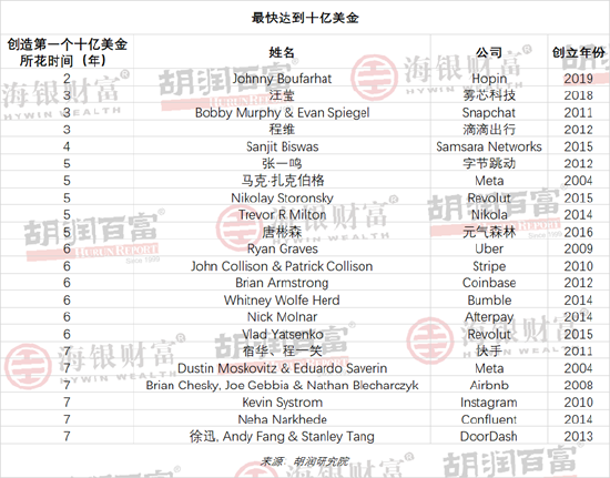 胡潤研究院在全球共找到87位40歲以下的白手起家十億美金企業家,比去年增加8位。它們只來自於11個國家,比去年多一個。總財富2.9萬億元人民幣,比去年下降15%。12人財富超過100億美元,比去年少5位。平均年齡37歲。平均用6年時間賺到第一個10億美金。