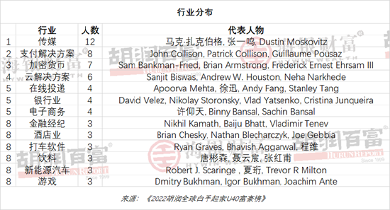 全球最成功的U40企業家的主要財富來源是傳媒,其次是支付解決方案。
