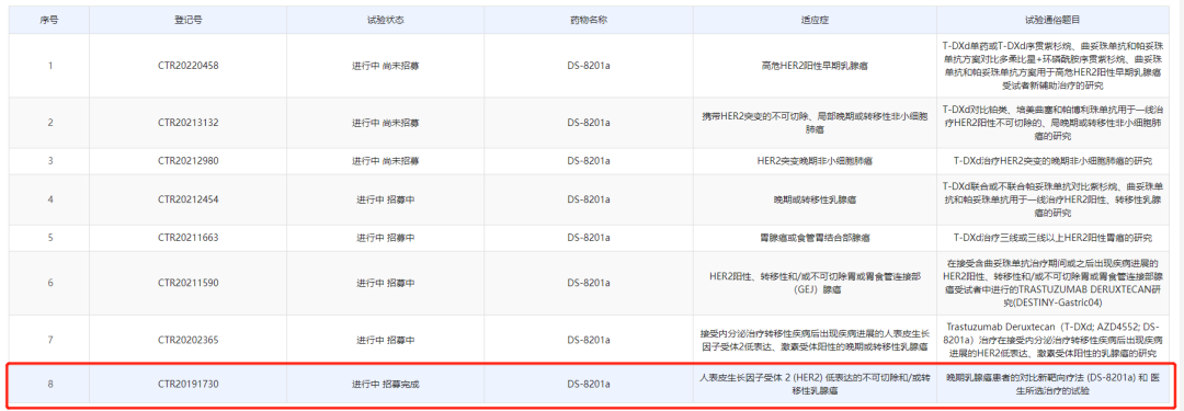 但對於在中國被譽為很可能是下一個「PD-1」「PD-L1」的ADC賽道,8201陡然闖進,為它們正在進展的臨牀試驗,陡添變數。