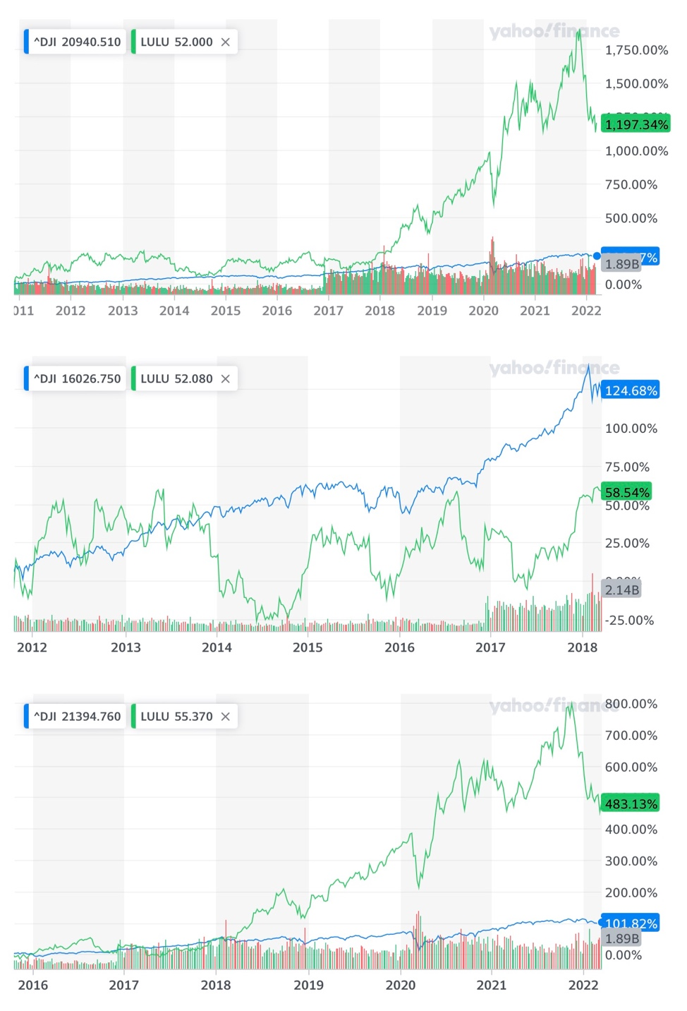 △ Lululemon的股市表現自2013年起持續低迷,這一狀態一直持續到2017年。(來源:Yahoo! Finance)