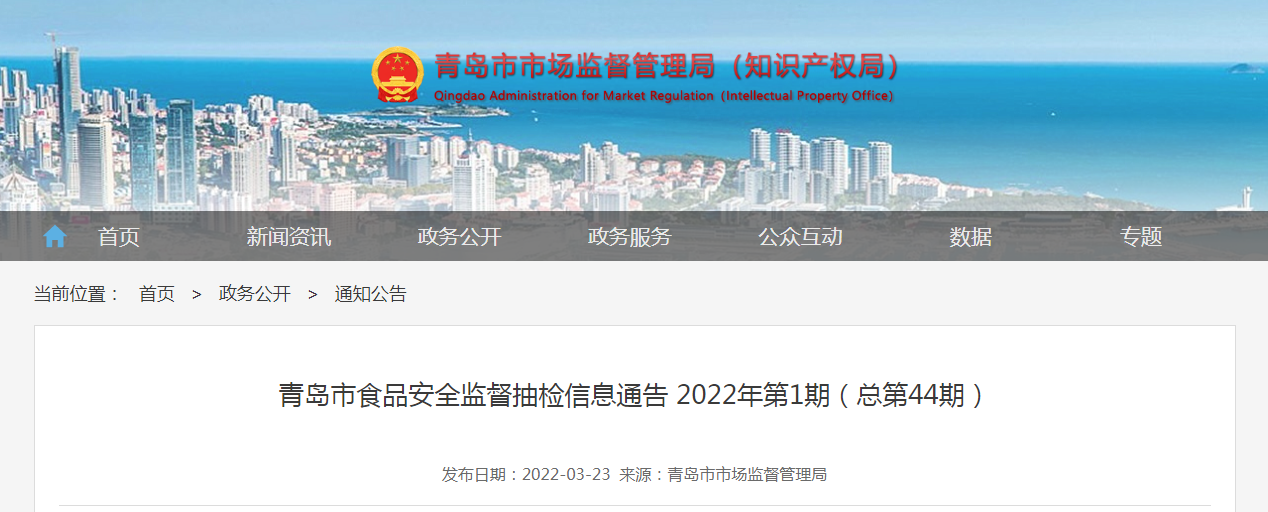 中國質量新聞網訊 3月23日,山東省青島市市場監管局網站發佈食品安全監督抽檢信息2022年第1期(總第44期)。為進一步保障食品安全,該局對餅乾、餐飲食品、茶葉及相關製品、炒貨食品及堅果製品、澱粉及澱粉製品、豆製品、蜂產品、糕點、罐頭、酒類、糧食加工品、肉製品、蔬菜製品、薯類和膨化食品、水產製品、水果製品、速凍食品、調味品、飲料等23大類食品3307批次樣品進行了監督抽檢,其中68批次樣品不合格,檢出了農藥殘留超標、獸藥殘留超標、超範圍、超限量使用食品添加劑、非法添加、其他污染物、生物毒素、微生物污染、重金屬等元素污染物、質量指標等問題。