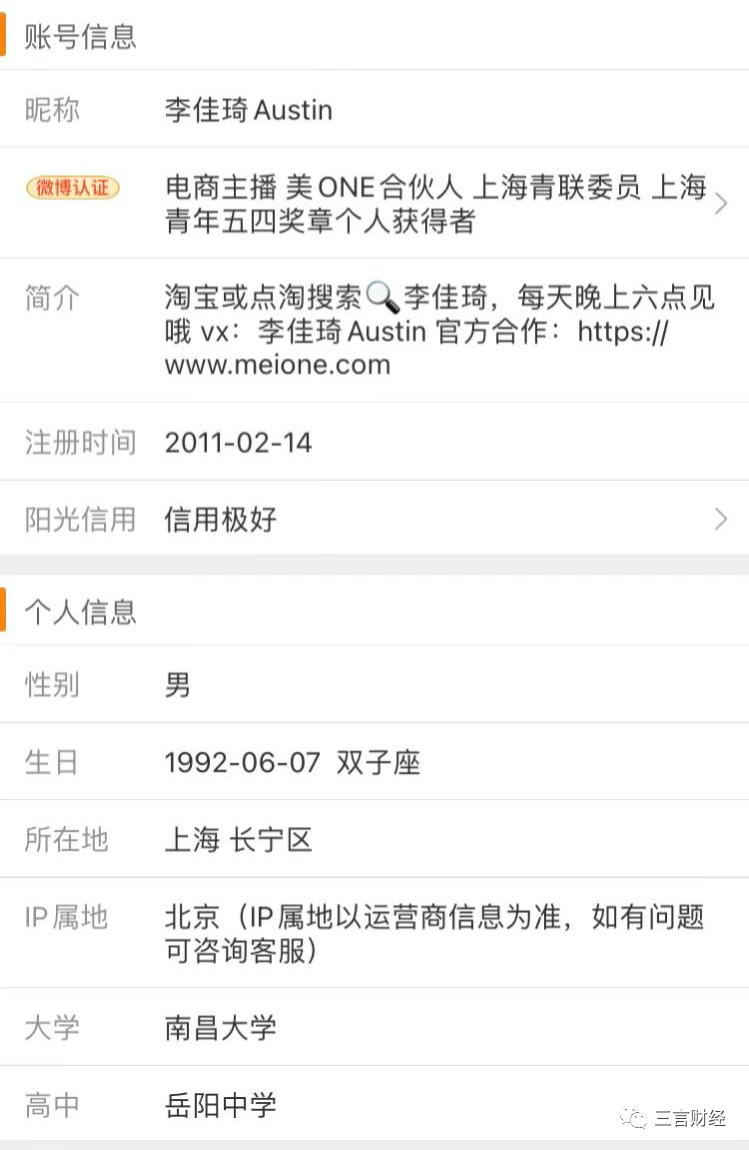 李佳琦的IP屬地是北京。