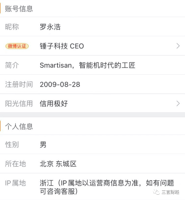 羅永浩的IP屬地是浙江。