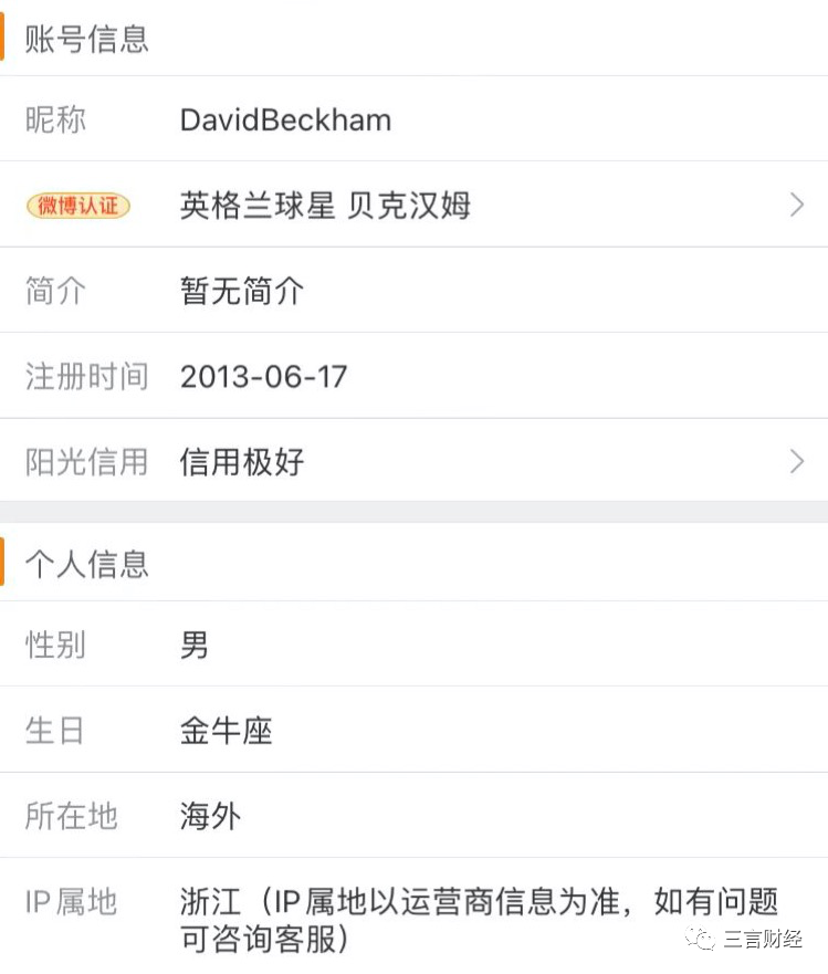貝克漢姆的IP屬地是浙江。