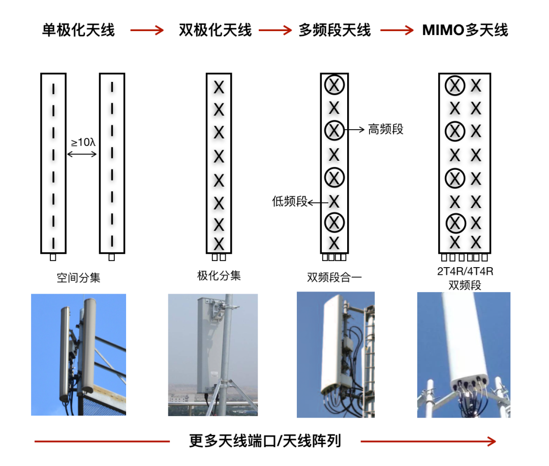簡而言之,從2G到5G時代,隨着頻段不斷新增,MIMO技術發展,以及鐵塔天面空間越來越緊張,運營商爲了提升網絡效率、降低鐵塔租金,推動了天線技術不斷向更多端口/天線陣列演進。