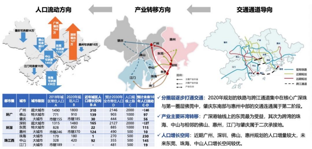 除了城市輪動、市場輪動的周期特徵之外,商業地產最為關注的應該是「人」。我們依照「消費看人口、人口看產業和交通」的邏輯來分析珠三角城市的商業投資價值。