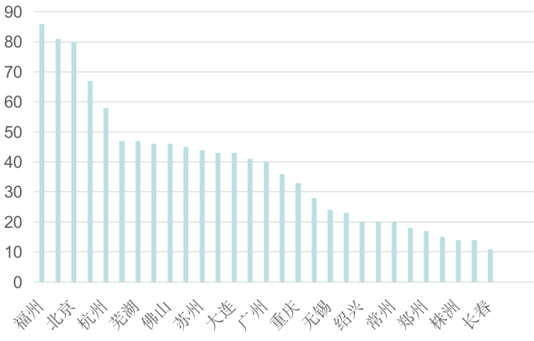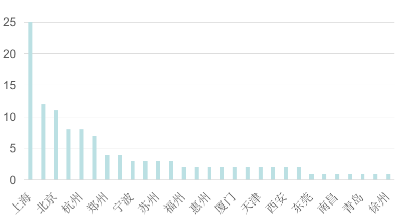 圖:2021年典型城市商業項目數量(個)