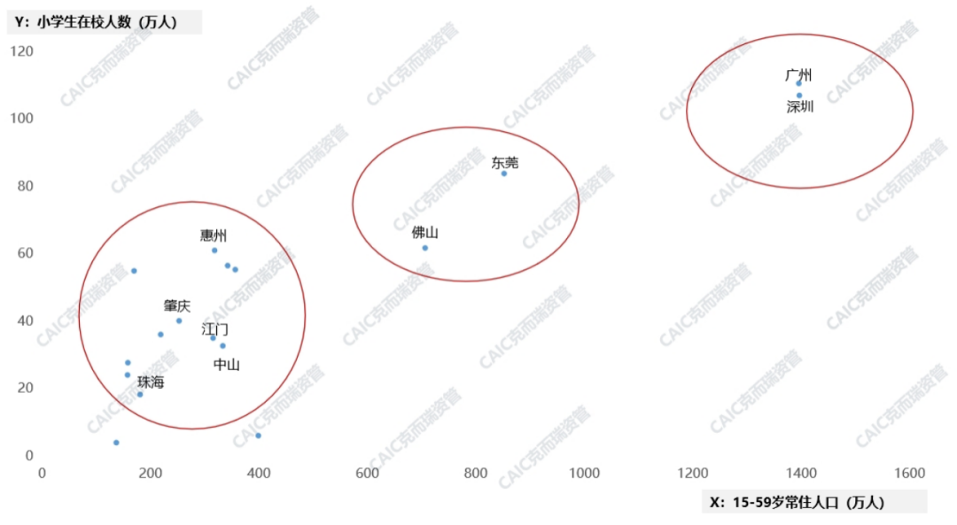 從人口基數來看,深圳為人口流入最多的廣東城市;廣州常住人口最多,同時也有穩定的人口流入;東莞佛山依然位於第二梯隊,遠超其他三四線城市;肇慶整體人口流失。從人口結構來看,廣深小學生人數最多,消費「流量」穩定,且青年人口居多,消費活力充足;東莞佛山次之,其他城市較弱,整體人口格局未變。