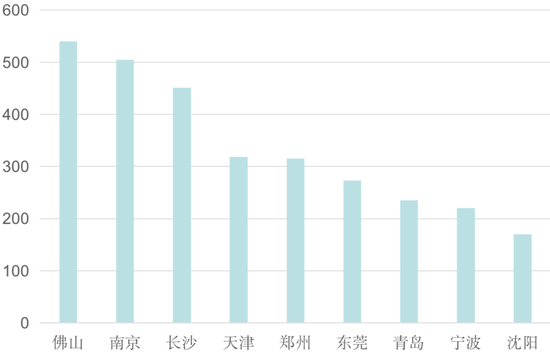 佛山、東莞為第二梯隊