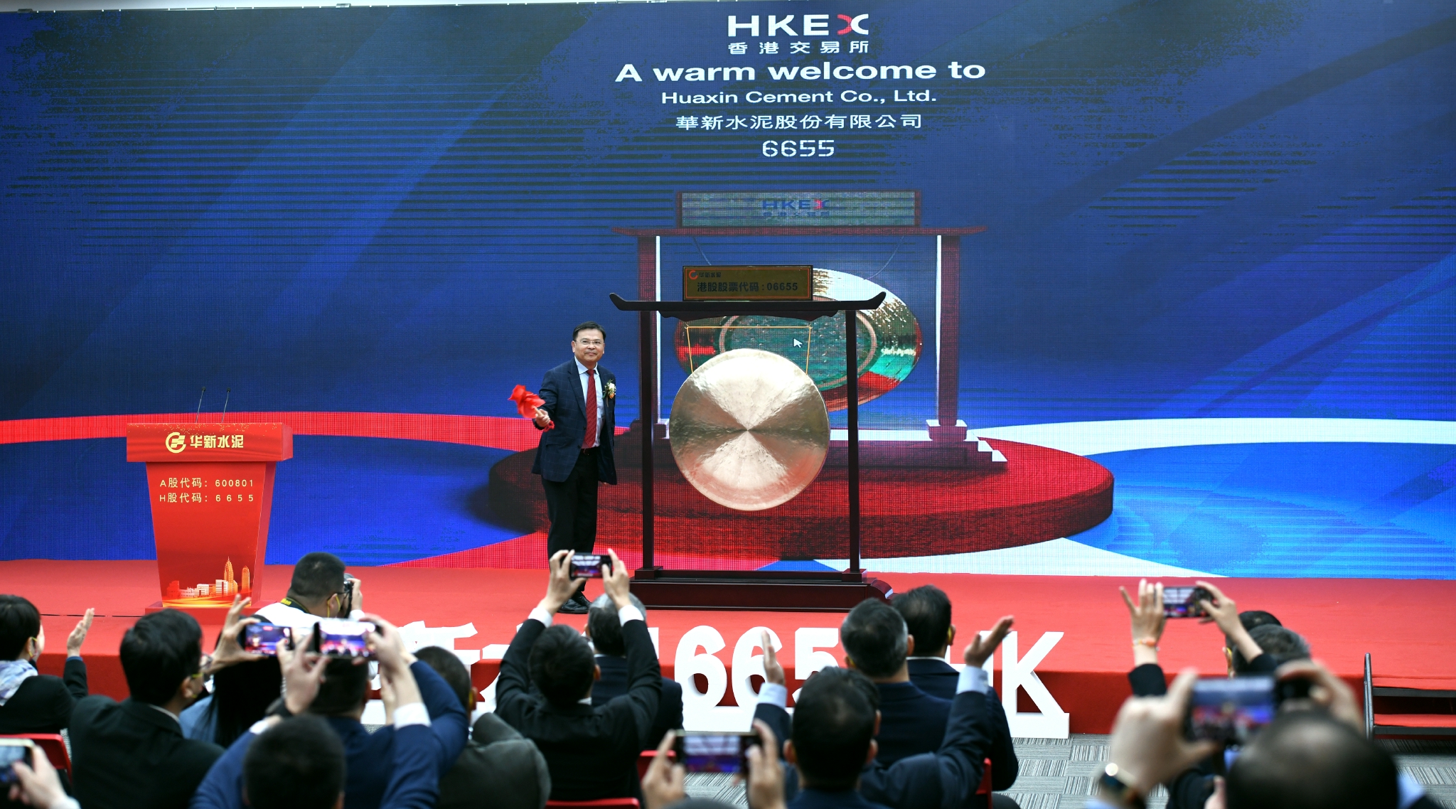 3月28日9點30分,隨着華新水泥股份有限公司總裁李葉青敲響開市鑼,該公司73472萬股境內上市外資股(B股),正式轉換上市地以介紹方式在香港聯合交易所有限公司主板上市及掛牌交易(股票代碼06655)。