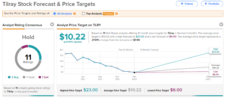 截至發稿,分析師對於大麻股的評級都稱不上是非常積極。Canopy Growth獲得了4個賣出,4個持有以及1個買入評價;極光大麻獲得了4個賣出,5個持有評級;而最近熱度較高的Tilray獲得了3個買入,7個持有以及1個賣出評級,但綜合目標價也僅為10.22美元,距離當前7.99美元的股價上升空間不足30%。