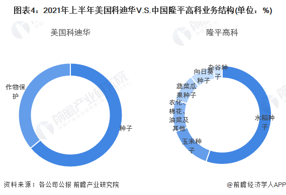 此外,科迪華與隆平高科均對種子產業鏈進行了延伸,目前科迪華業務涵蓋種子與作物保護兩大領域。2021年上半年,科迪華種子業務營收佔比為64%,作物保護業務營收佔比為36%。