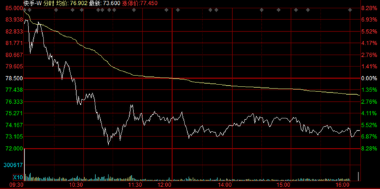 今日,短視頻巨頭快手高開8%,隨后持續跳水,盤中巨震逾16%,截至收盤跌6.24%,報73.60港元/股。