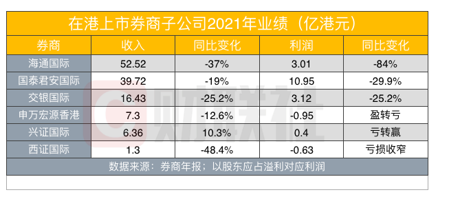 海通國際業績滑坡樣本,在港中資券商普遍窘境