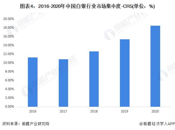 從行業集中度總體來看,我國白銀行業的市場集中度呈不斷提升的趨勢,2016年我國白銀採選行業前五大企業白銀生產量僅為11.26%,2020年儘管受疫情影響,但我國白銀行業頭部企業市場份額進一步上升爲18.46%,達近兩年最高值。