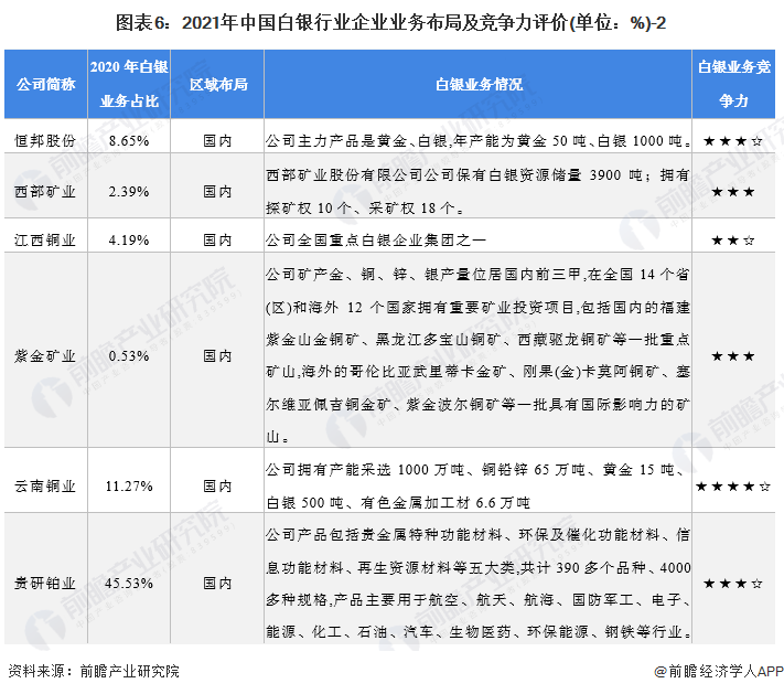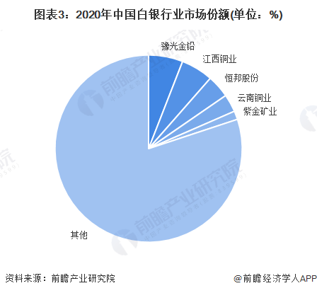 目前,中國白銀行業龍頭企業分別是豫光金鉛和江西銅業。2020年,按白銀產量來看,豫光金鉛的市場份額達5.9%,江西銅業的市場份額達5.8%。