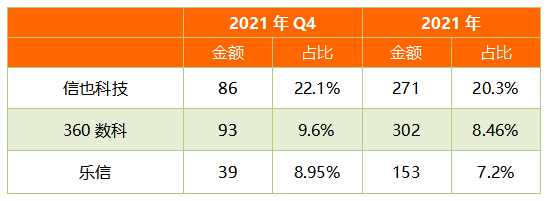 2021年全年,360數科繼續在規模上領先,促成貸款3571億元,同比增長44.7%;信也科技實現了三位數增長,促成貸款1374億元,同比增長111.1%;樂信促成貸款2138億元,同比增長21%。