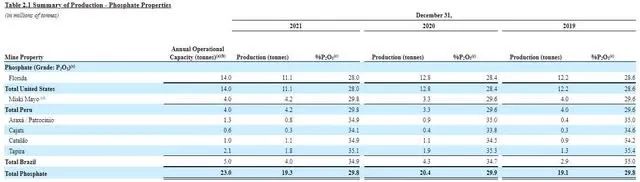 Mosaic磷酸鹽(Mosaic FY21表格10-K申請)