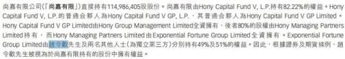 據先聲藥業港股招股書披露,尚嘉有限(全稱「尚嘉有限公司」,於2011年4月11日根據英屬維爾京羣島法律註冊成立的公司,先聲藥業引入的投資者之一)持有先聲藥業股份,尚嘉有限由Hony Capital Fund V, L.P.持有82.22%的權益,背后是弘毅投資(Hony Capital)。