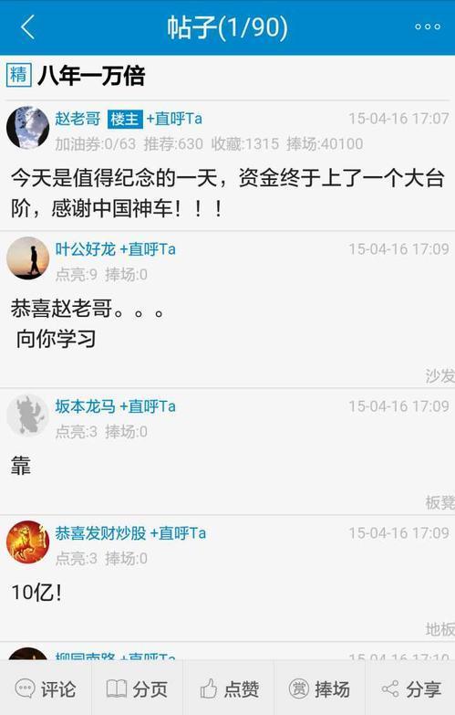 八年一萬倍,股市神話!2015年4月16日,趙老哥在股吧中發佈了「八年一萬倍」的文章,具體內容是,:「今天是個好日子,是值得紀念的一天,資金終於上了一個大臺階,感謝中國神車!」,並在文末曬出了交割單。自此,趙老哥一戰封神,完成了八年一萬倍的神話。