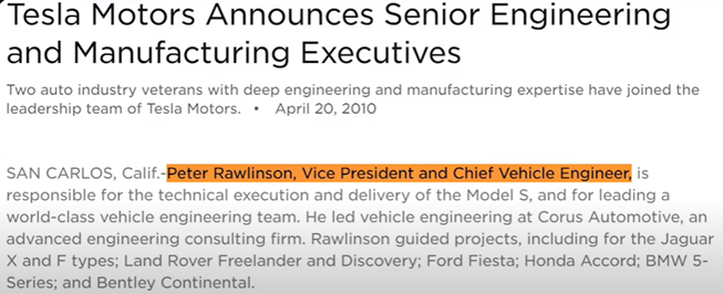 然而,當我們翻看特斯拉的2010年的官網,當時特斯拉是這麼描述羅林森的:VP兼總工程師。