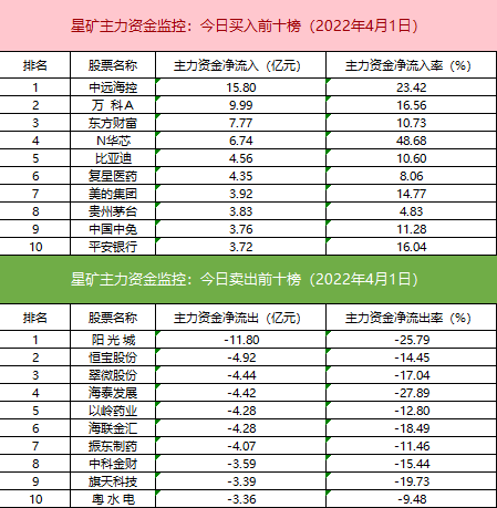 從個股主力資金監控數據來看,主力資金淨流入前十的個股中權重白馬股較多,中遠海控主力資金淨流入居首。
