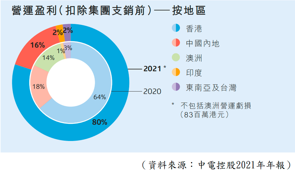 正如之前所述,香港是中電的重心,賺取穩定而持續的盈利,同時,中電利用資源投資中國及澳洲,以及發展各類能源業務,可見中電有穩中求勝的效果。