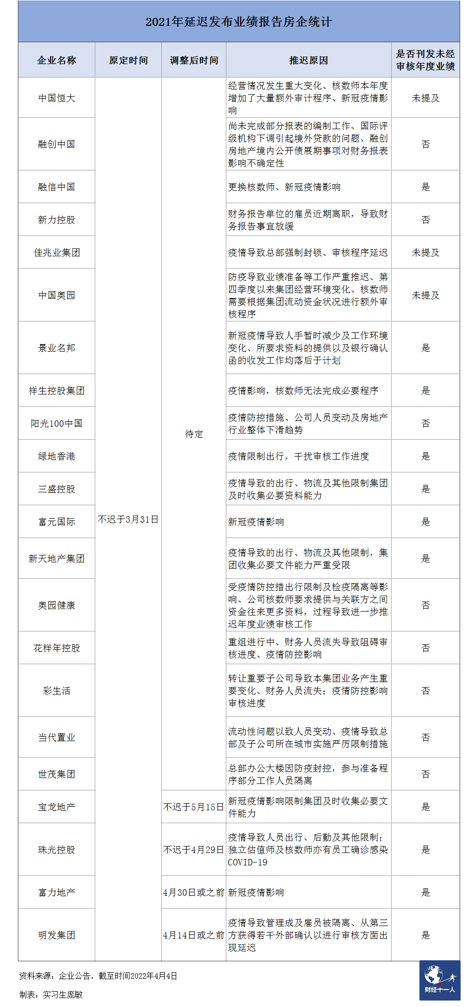 一是,受新冠疫情所累,財務審計事項受到影響,如融信中國、世茂集團、富力地產、雅居樂集團等;