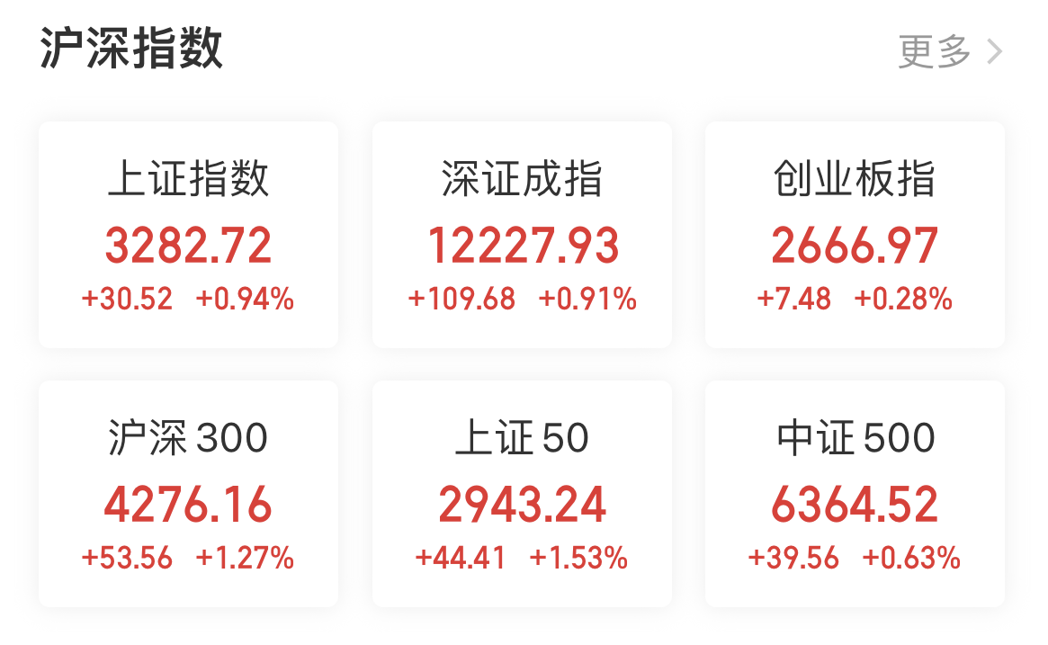 上周五A股收盤,上證指數小幅上漲0.94%,報3282.72點。深證成指小幅上漲0.91%,報12227.93點。創業板指小幅上漲0.28%,報2666.97點。