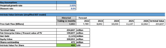 對於 Adobe,我更喜歡使用具有永久增長率的 5 年貼現現金流模型,而不是相對估值。這是因為Adobe擁有持續且不斷增長的現金流。我願意根據我認為世界的發展方向,對未來的增長率做出一些有根據的假設。