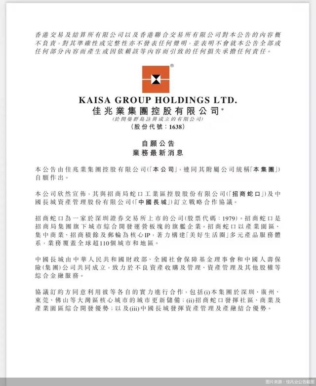 佳兆業的紓困之路日漸清晰。4月5日,佳兆業集團發佈公告稱,其已與招商蛇口工業區控股股份有限公司(以下簡稱「招商蛇口」)、中國長城資產管理股份有限公司(以下簡稱「長城資產」)在深圳簽署戰略合作協議。各方擬建立戰略合作關係,在城市更新、房地產開發、商業綜合體經營等領域開展合作。更為重要的是,這將有助於緩解佳兆業的短期流動資金困難。