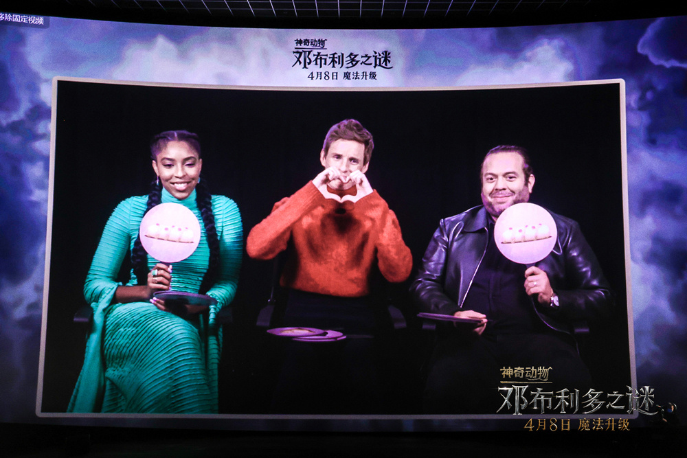 4月6日,由華納兄弟影片公司出品、《哈利·波特》作者J.K.羅琳創作的「魔法世界」全新冒險篇章《神奇動物:鄧布利多之謎》,在北京舉辦中國首映禮。放映開始前,現場與「魔法世界」夢幻連線,裘德·洛和麥斯·米科爾森同框問候中國觀眾,「小雀斑」埃迪·雷德梅恩、丹·福勒、傑西卡·威廉姆斯等主創實時連線,現身講述幕后故事。整個觀影過程更像是一場久違的大銀幕魔法狂歡,不少粉絲大讚影片「一次全方位升級的魔法冒險,不負四年等待!」