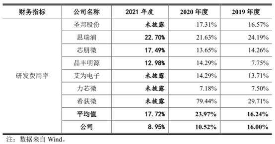 報告期內,可比公司研發費用率均值分別為16.75%、16.24%、23.97%、17.72%。