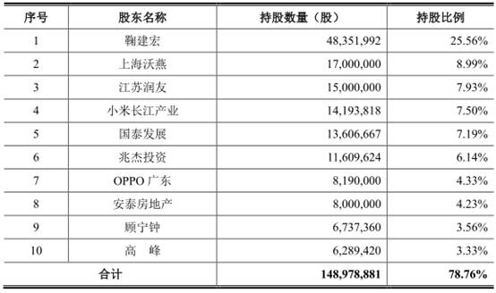 小米長江產業和OPPO廣東位列帝奧微前十大股東。本次發行前,小米長江產業持有公司14,193,818股,持股比例7.50%,為公司第四大股東;OPPO廣東持有公司8,190,000股,持股比例4.33%,為公司第七大股東。