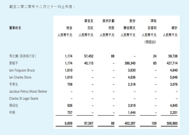 2020年,劉熾平年度薪酬為4.277億元,其中股權薪酬為3.863億元,獎金為3360萬元,其股權薪酬在2021年明顯降低。