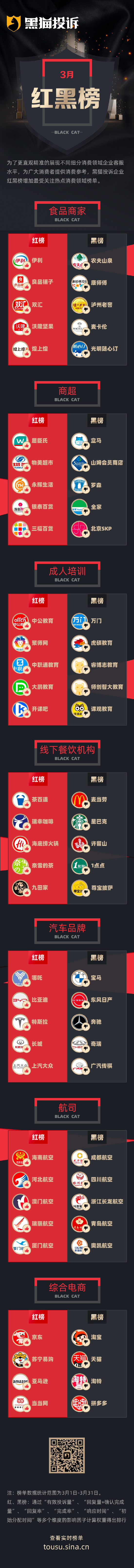 黑貓投訴3月行業榜單