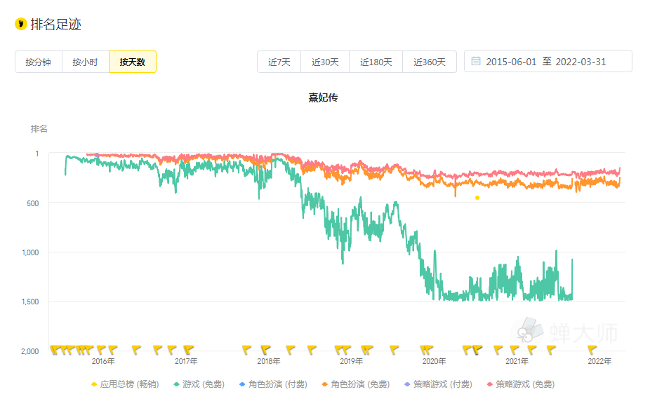 另據數據顯示,友誼時光在2018年3月上線的《宮廷計手遊》也未能持續爆火,目前在國內大陸iOS免費榜榜單1500名開外,2019年12月底上線的《浮生為卿歌》曾在國內大陸iOS免費榜最高第2位,目前在200名之外。