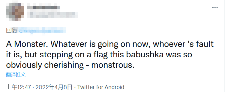 「簡直是個怪物!不管現在發生了什麼,不管是誰的錯,但這樣踩在一個老奶奶珍視的旗幟上,這種行為太可怕了。」