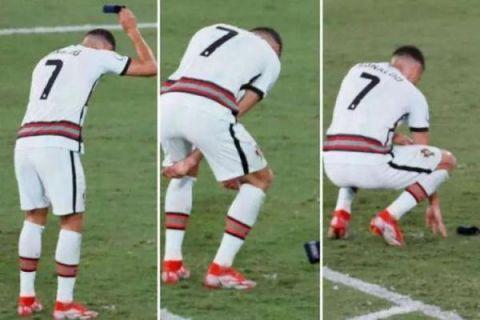 賽后,C羅走到球員通道時,發生了怒摔球迷手機的惡劣事件。