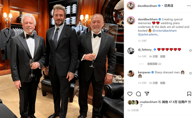 早在今年3月,貝克漢姆就在社交網站上曬了與親家試禮服的合影。隨后,貝克漢姆一家飛抵美國準備婚禮。