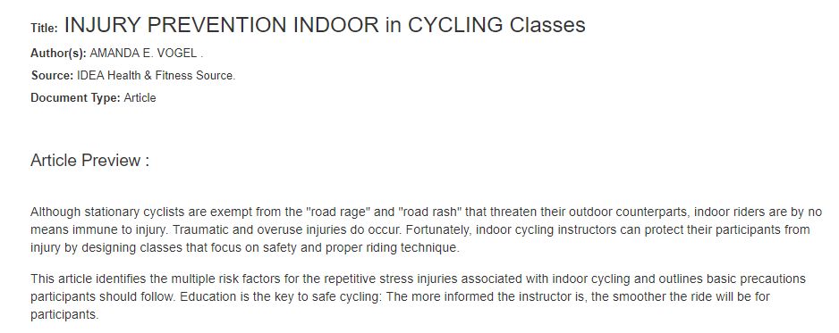 美國健身健康平臺IDEA曾發表單車健身須注意的安全事項,提出維持騎行過程中身體姿態的平衡,以及在課程前熱身,或能避免運動過程中肌肉或關節的損傷。